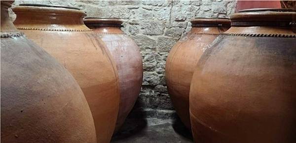 100% Garnacha Blanca,手工採收後在不鏽鋼桶中泡皮45天,於1000公升大型黏土雙耳陶甕瓶陳年9個月。石灰岩地質,呈現楊桃柑橘鮮檸美味。